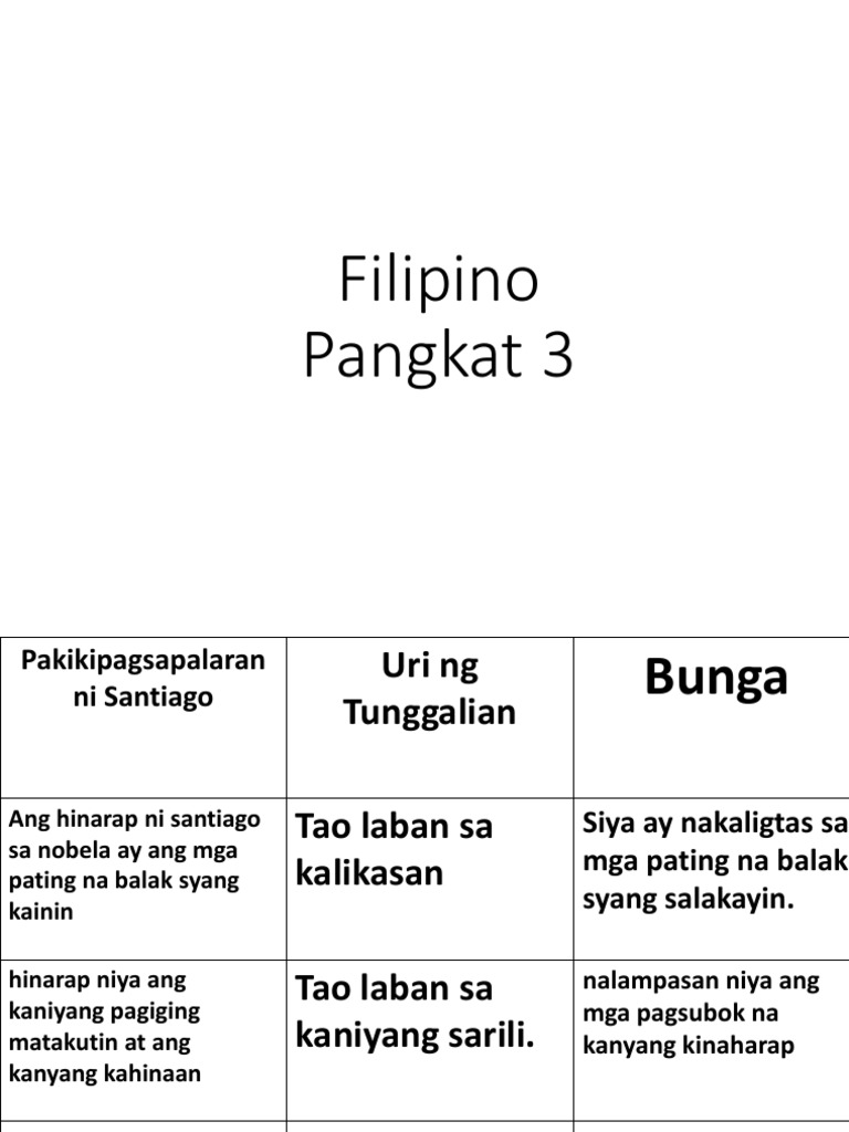 Ano ang ibig sabihin ng tunggalian. Tao laban sa tao Tao laban sa sarili Tao laban sa lipunan Tao laban sa kalikasan. Ibigay ang iyong saloobin hinggil na sinasabing batas sa pamamagitan ng pagsulat na sanaysay na binubuo ng.