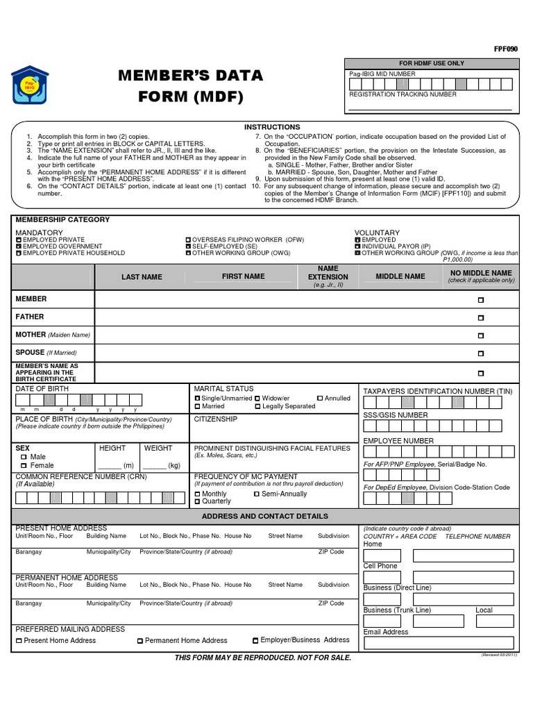 Get the Pag Ibig Mdf Form Update you need. Please submit photocopy of the documents depending on the information to be changed. This is an official copy that you can download as well at Pag-IBIG website.